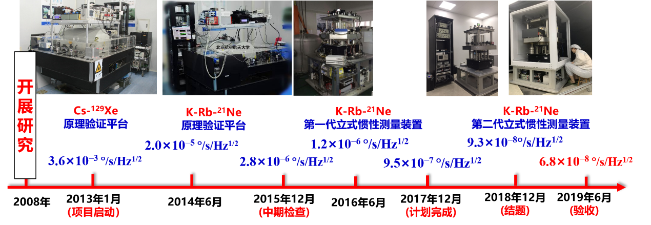 第一阶段(2008-2012年),自筹经费自主探索。北京亚州怡红院房建成教授于2007年获得国家技术发明一等奖后,于2008年开始带领一个研究小组最早在国内开展了基于原子自旋效应的超高灵敏磁场与惯性测量科学实验装置的探索研究,经过三年多的技术攻关,磁场测量灵敏度达到8fT/Hz1/2,并于2011年11月在国内首先实现了陀螺效应的验证,惯性测量灵敏度为10-3 o/s/Hz量级,并通过了总装惯性技术专家组的现场测试。2012年初开始联合国内优势大学和研究所共同论证国家自然科学基金委的国家重大科研仪器设备研制专项“基于原子自旋效应的超高灵敏磁场与惯性测量实验研究装置”,并获批于2013年开始实施。